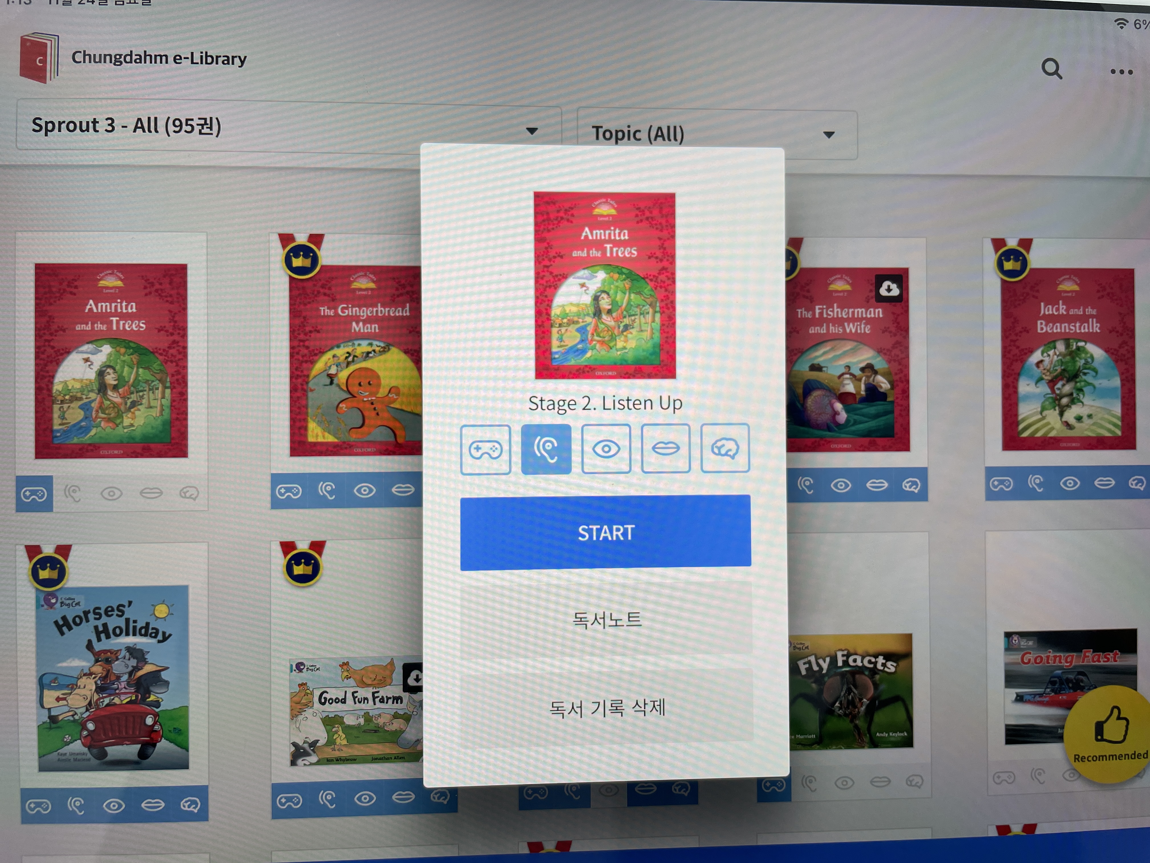 현재 Sprout 3 에는 총 95권이 등록되어 있네요. 한 레벨당 6개월 과정이니 주 4권정도 읽으면 대략 다 읽을 수 있을것 같습니다.