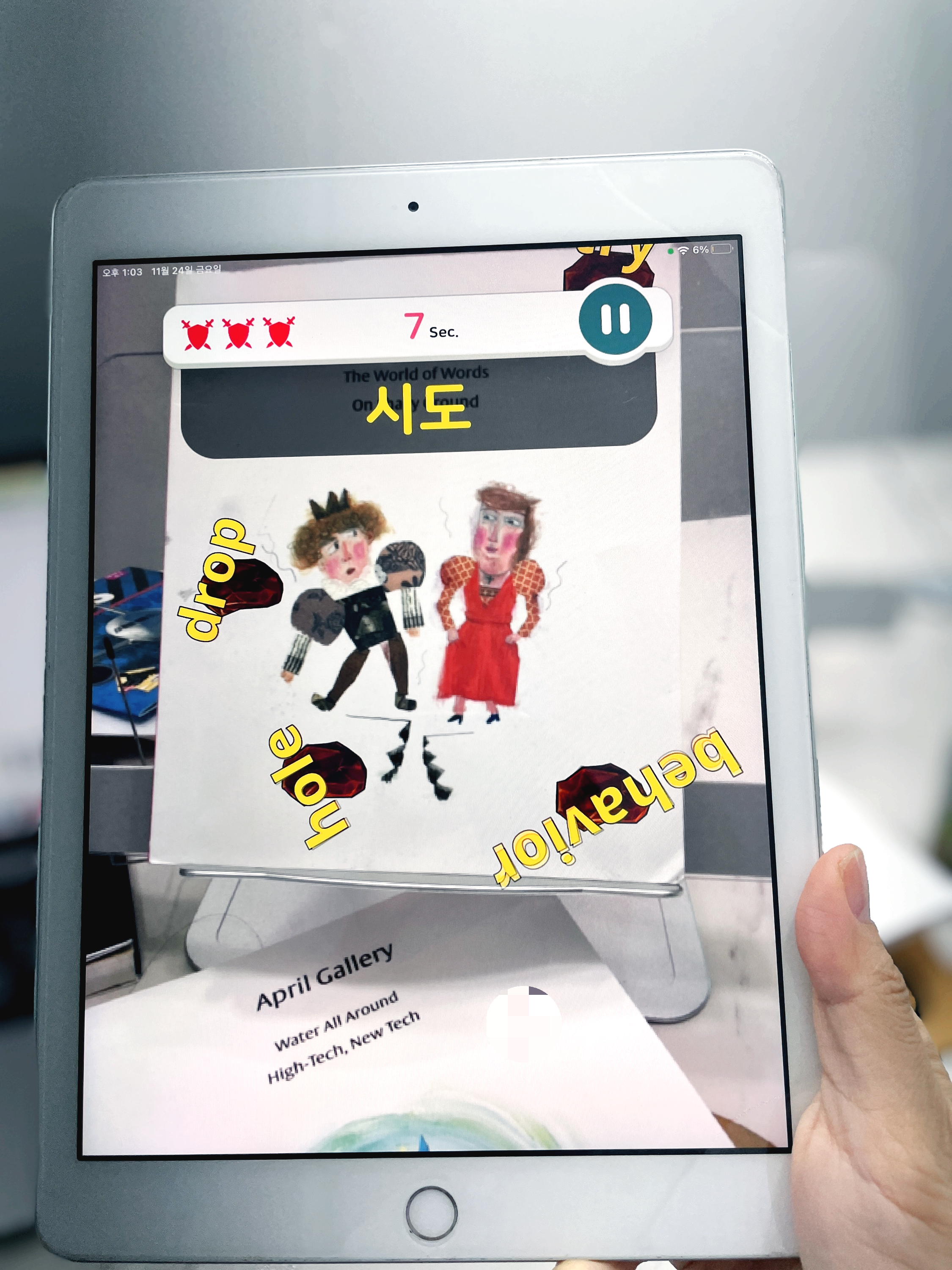 게임형식으로 하는 가상증강현실 어플인데요, 총 2~3단계의 게임형식의 학습이 있으며, 아이들이 재미있게 참여할수 있습니다. (주 1회)