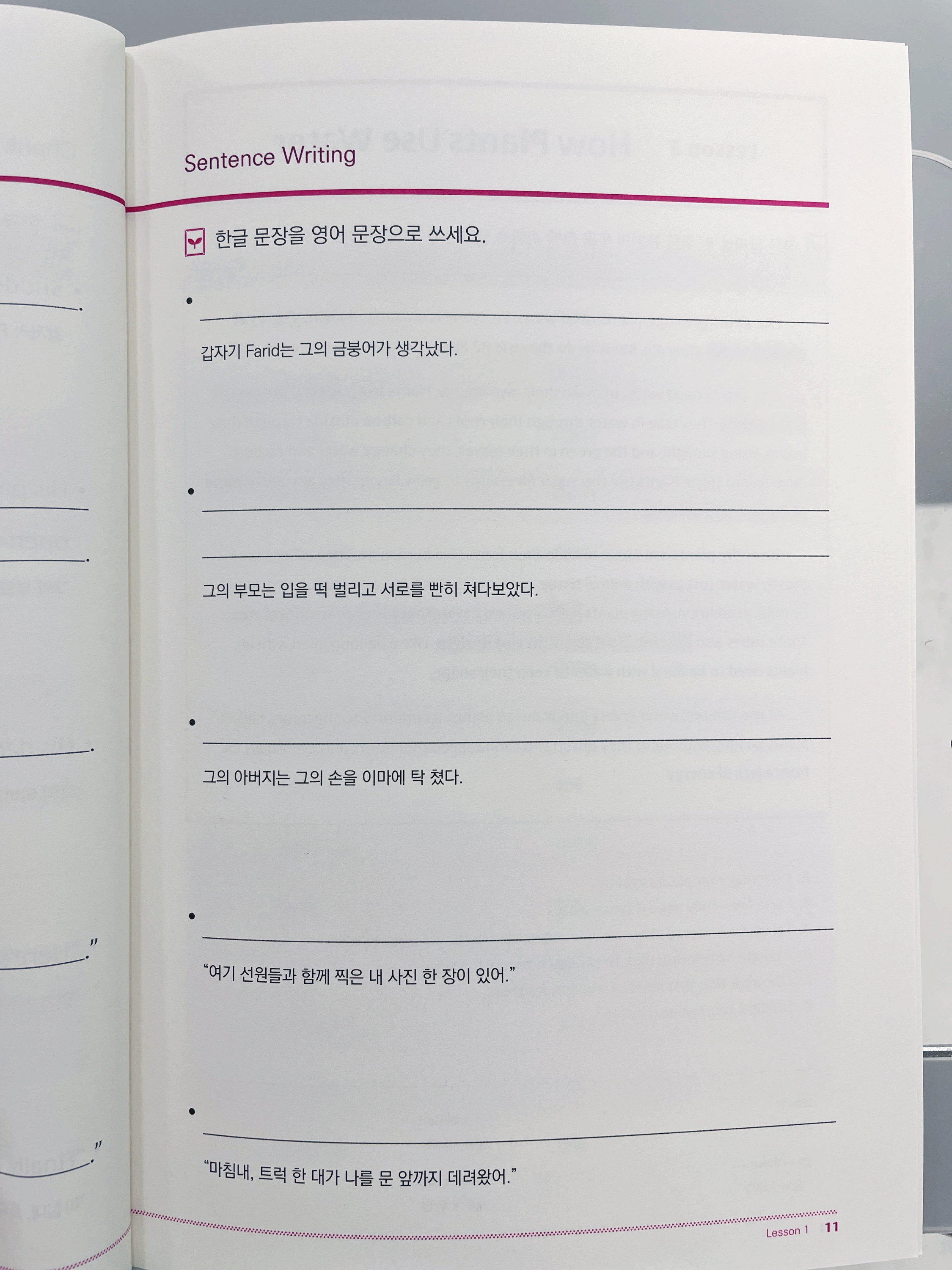 그리고 수업시간에도 해당 주제에 맞춰서 써보는 시간이 있는것 같습니다. 레벨이 낮았을때는 선생님이 예시 문장도 써주고, 그걸 그대로 써오기도 했는데, 요새는 전부다 스스로 쓰게 하는것 같더라고요.