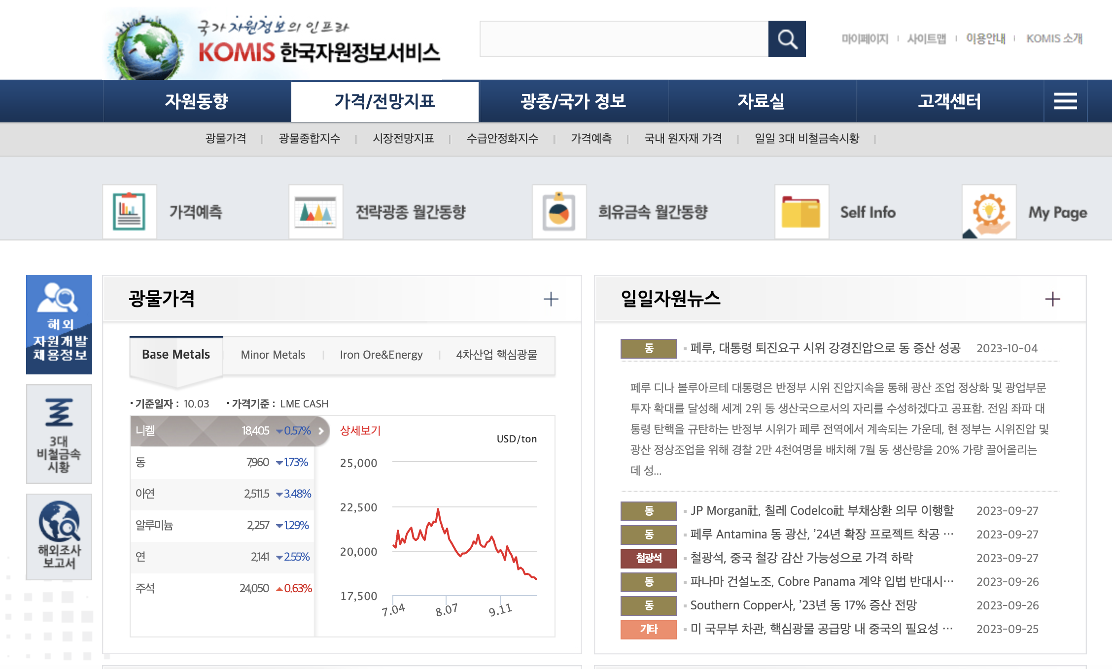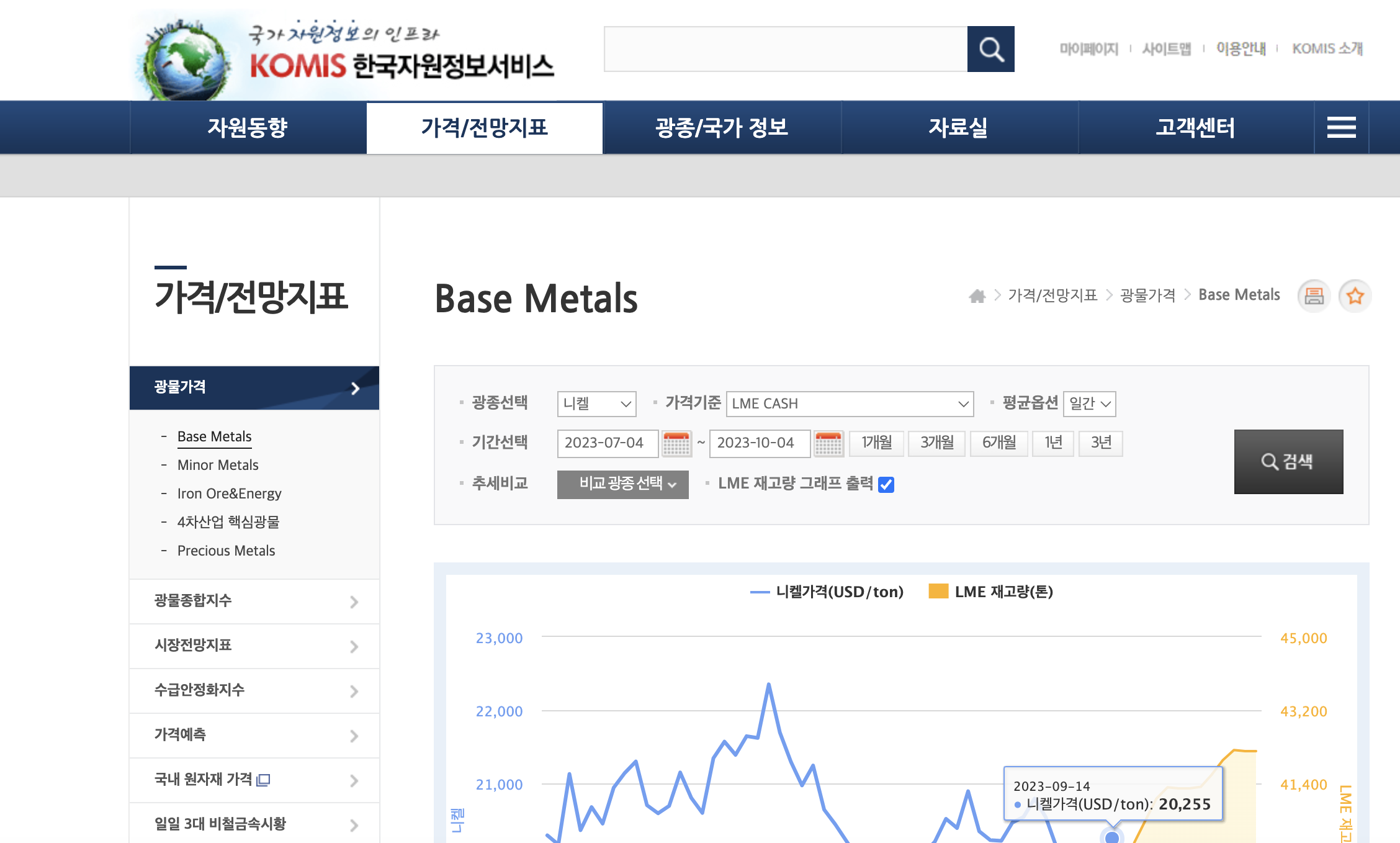 3. 광물가격> 4차 산업 핵실 광물 클릭