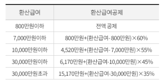 2) 환산급여를 통해 환산급여 공제 테이블에 따라 환산급여 공제금액을 구합니다.