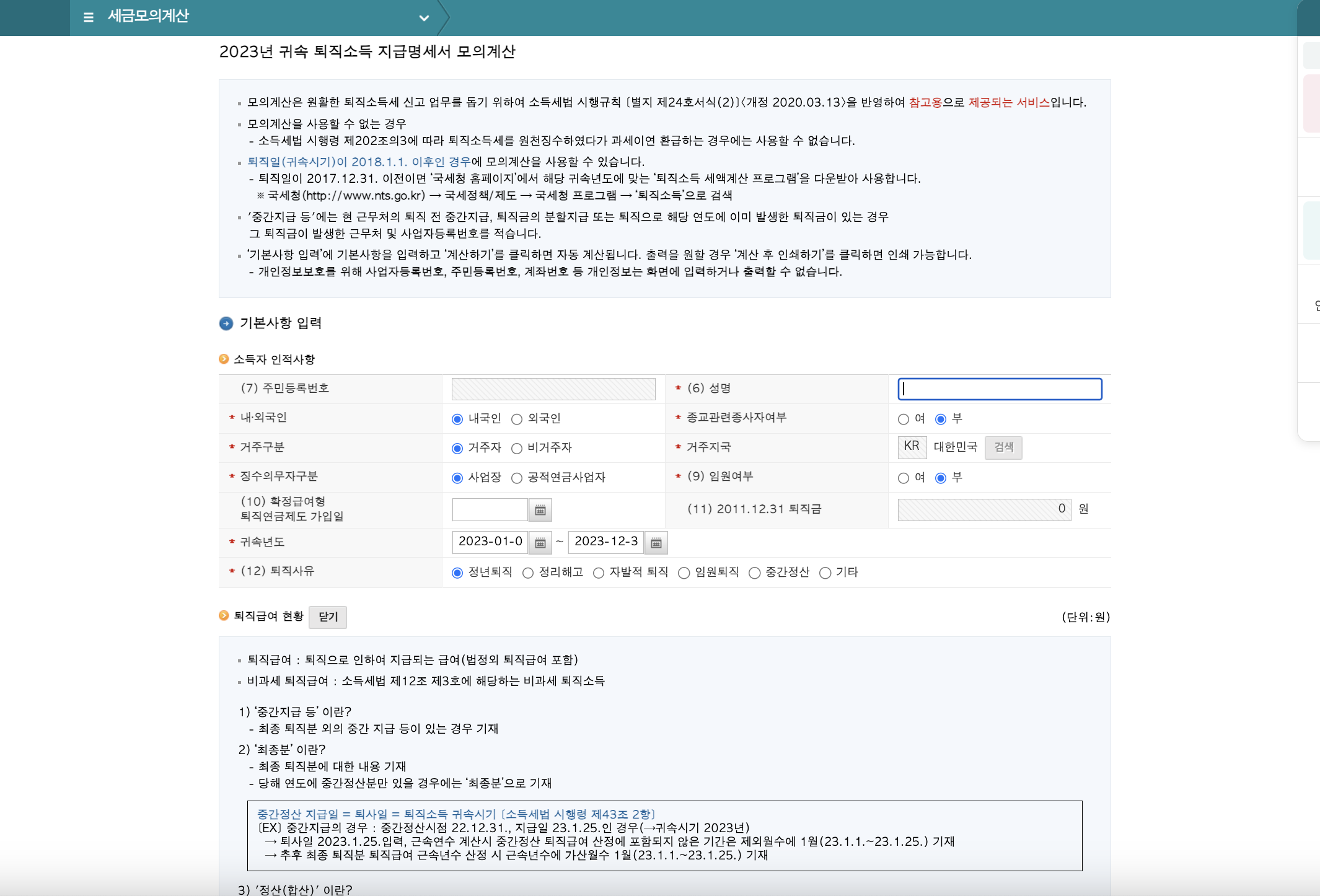 3. 퇴직소득세 모의 계산 법